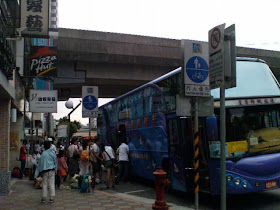 2008年7月,我在舊佳里部分的中正路上,瞥見一位婦人與一名國中女生不約而同地登上路樹基座仰首查看公車站牌,一邊笑一邊拍下了這張照片。
